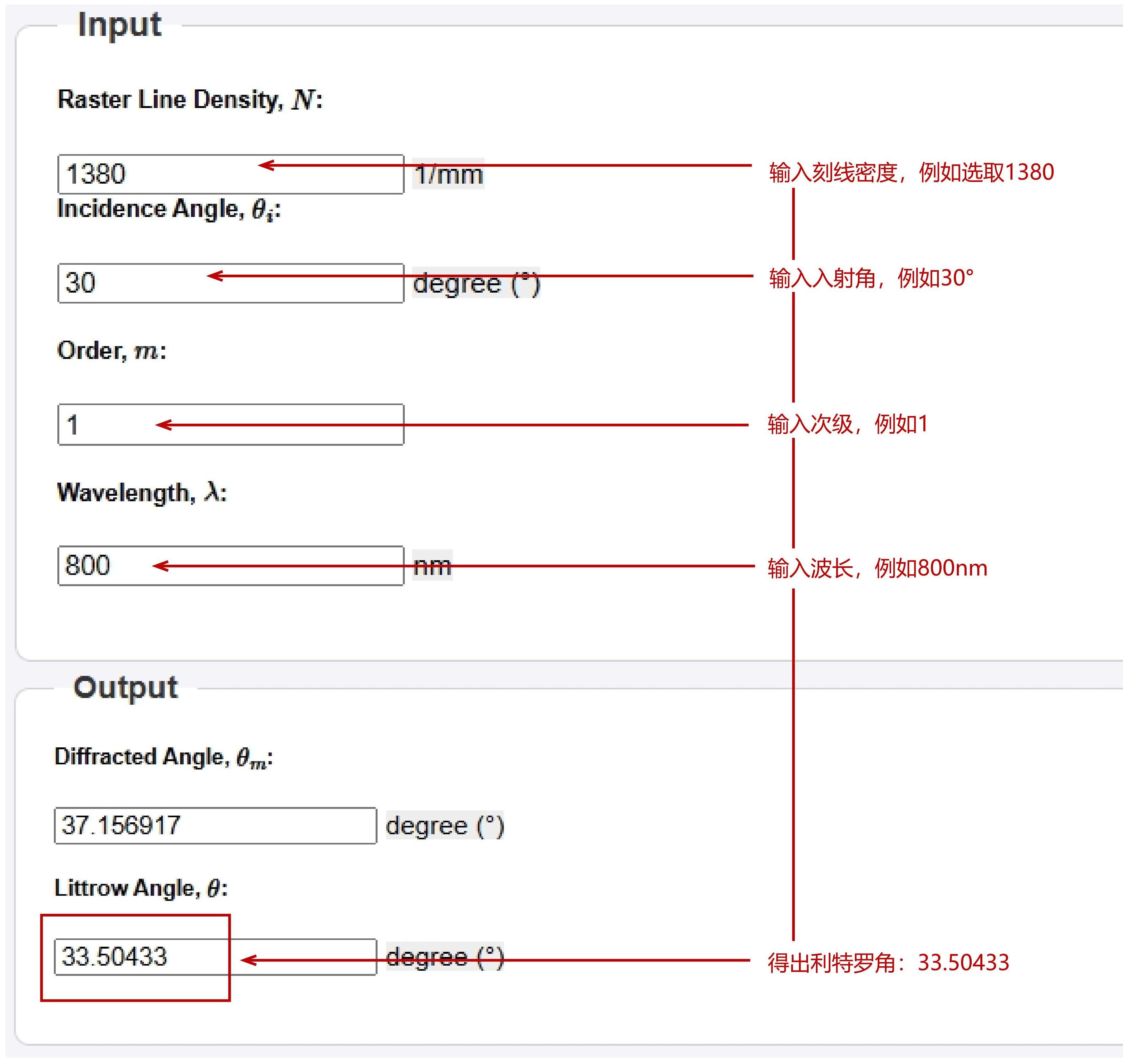 2.光柵的衍射角和Littrow角計算(點擊跳轉(zhuǎn)使用):