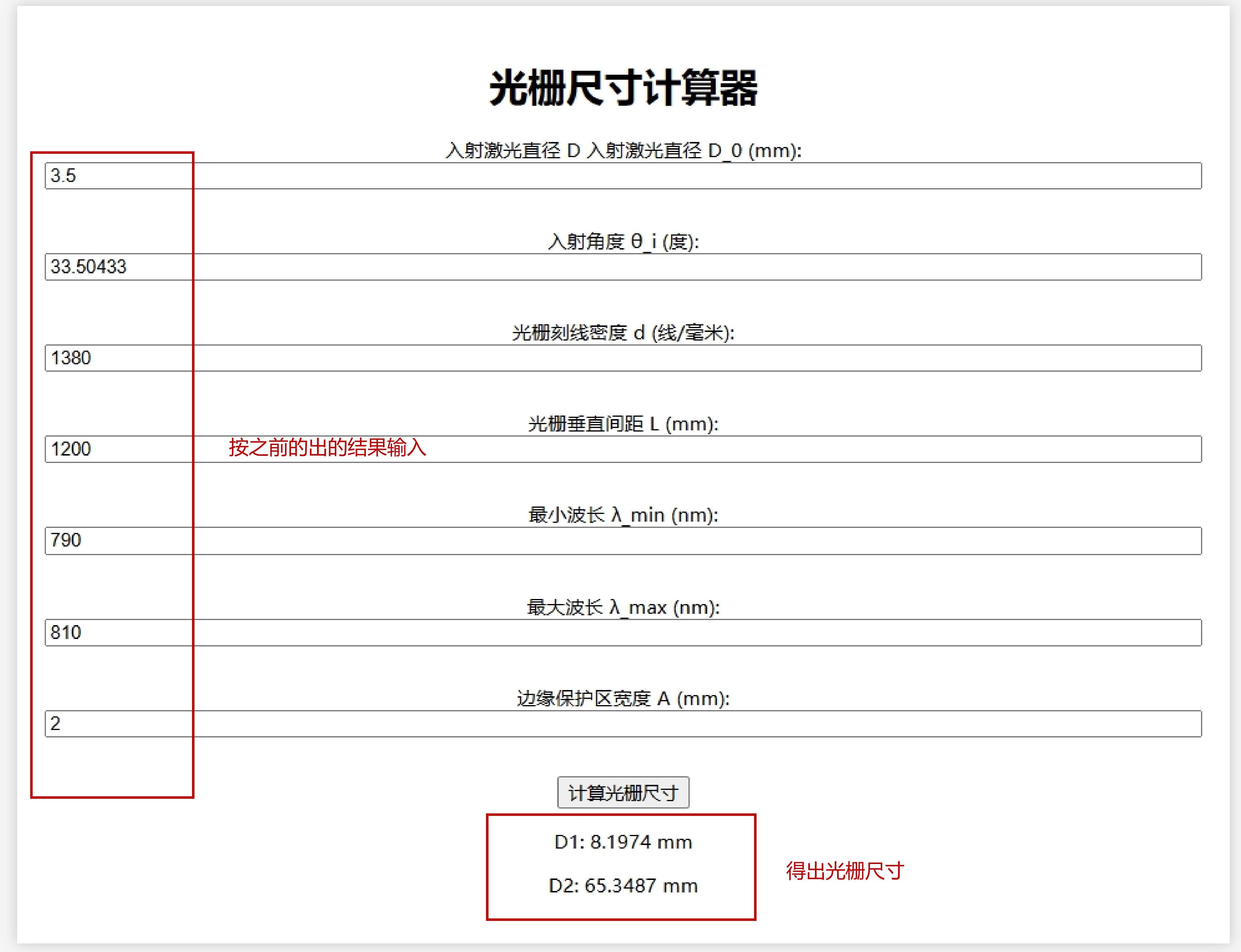 4、根據(jù)入射角和光柵間距計算兩片光柵的最小尺寸