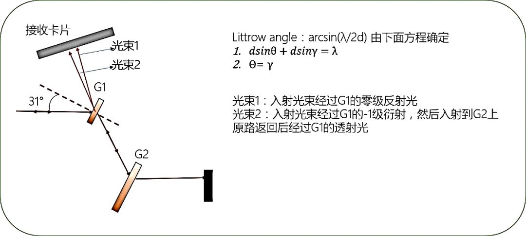 透射光與入射光的0級反射光重合——即入射光的-1級衍射光的反向延長線與入射光的0級反射光重合。此時就是我們需要的Littrow角!