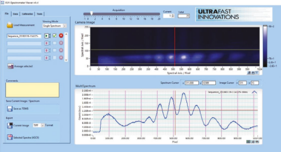 - 左圖:我們用戶友好的軟件的截圖,顯示了XUV光子范圍內(nèi)高次諧波生成輻射的測(cè)量結(jié)果