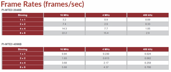 幀率 在2k x 2k分辨率下具有大約3幀/秒的全幀率,使PI-MTE3比前幾代產(chǎn)品的分辨率高出7-10倍。利用高價(jià)值的散熱設(shè)計(jì),電子設(shè)備能夠有效散熱,使得PI-MTE3能夠連續(xù)運(yùn)行而無需定期關(guān)閉相機(jī)。 |
