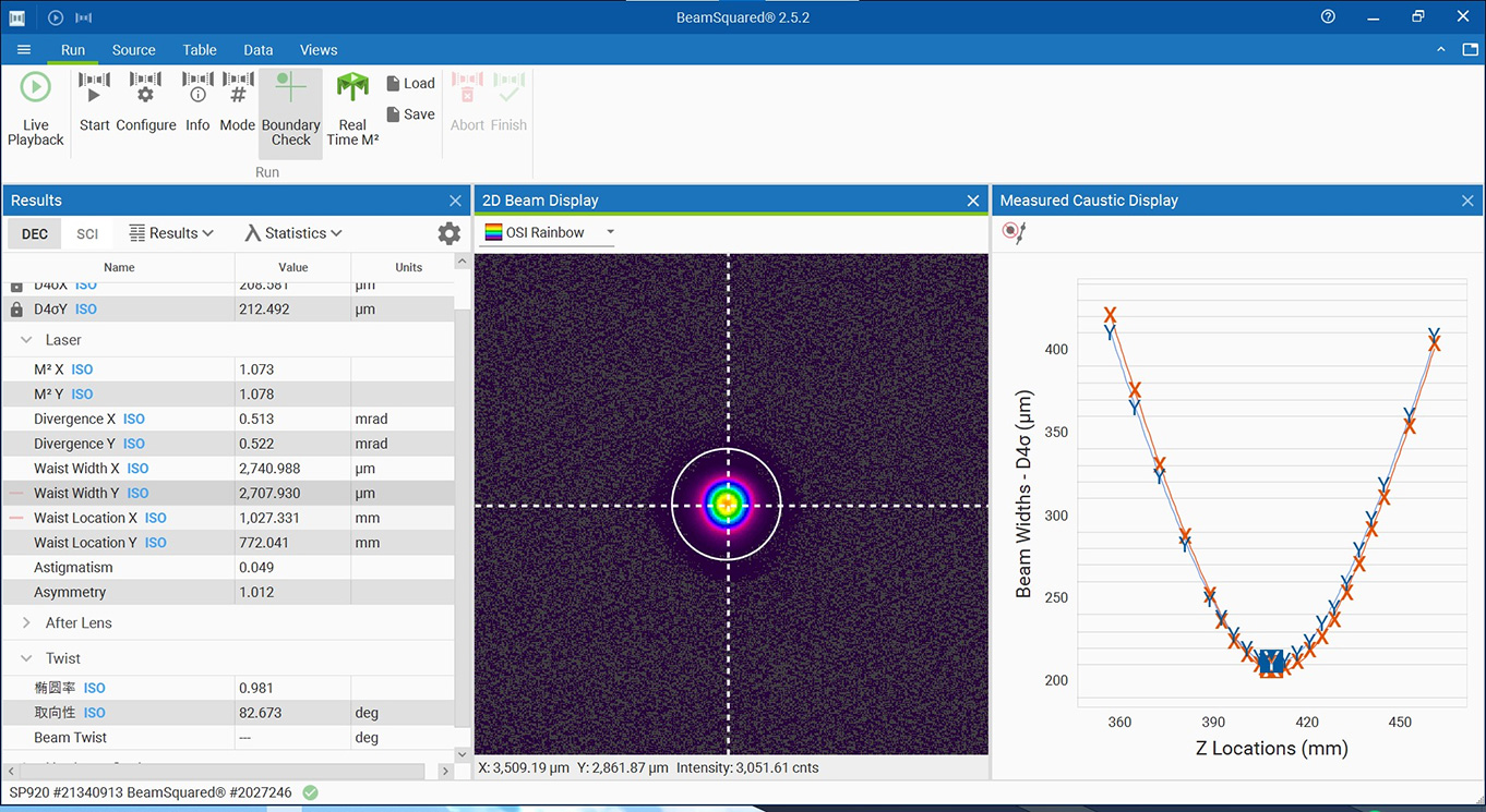紅外飛秒典型光束質(zhì)量 50 W/200 KHz