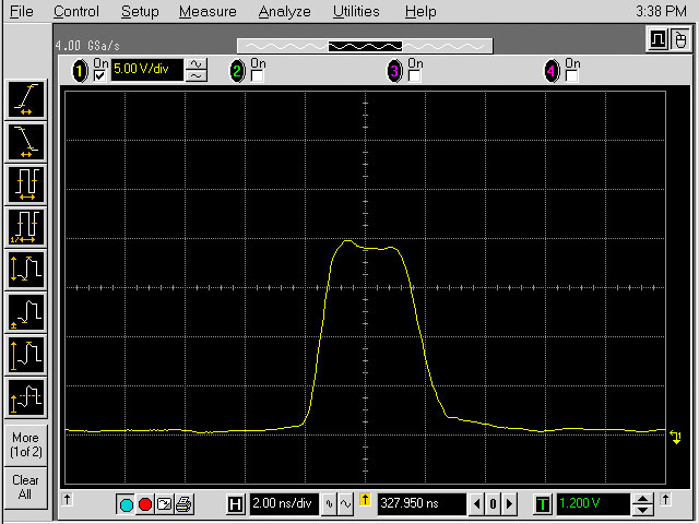 這是我們標(biāo)準(zhǔn)系列中光孔徑最大的 KD*P 電光調(diào)制器,圖示為貫通終端結(jié)構(gòu),可連接至 50 歐姆高速開(kāi)關(guān)驅(qū)動(dòng)器。 使用 25mm Pockels Cell 實(shí)現(xiàn) 4ns 寬光學(xué)開(kāi)關(guān)窗口 使用 EM525 型 25mm Pockels Cell 實(shí)現(xiàn) 4ns 光門(mén) 示波器波形顯示 25mm Pockels Cell 的開(kāi)關(guān)效果,上升時(shí)間 <850ps |
