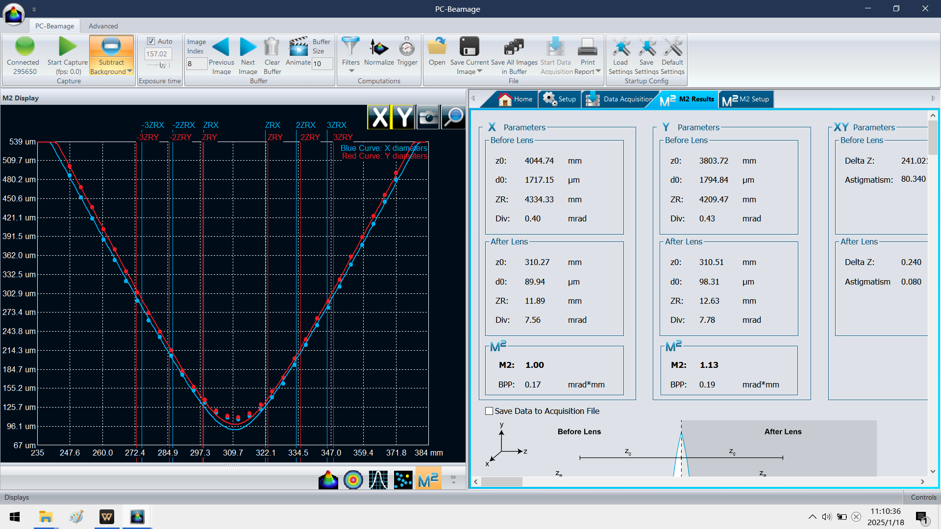 綠光皮秒典型光束質(zhì)量 120 W/400 kHz